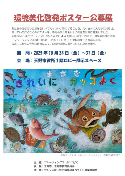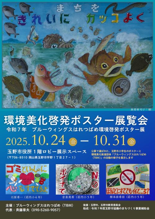 TBMは、玉野市を綺麗でゴミのない、カッコいい町にするためのゴミ拾い活動を行うとともに、ゴミ捨て防止の啓発活動を行っています。今回、市内の小学校高学年児童を対象に「ポイ捨て防止」などの環境美化委啓発ポスターを募集しました。