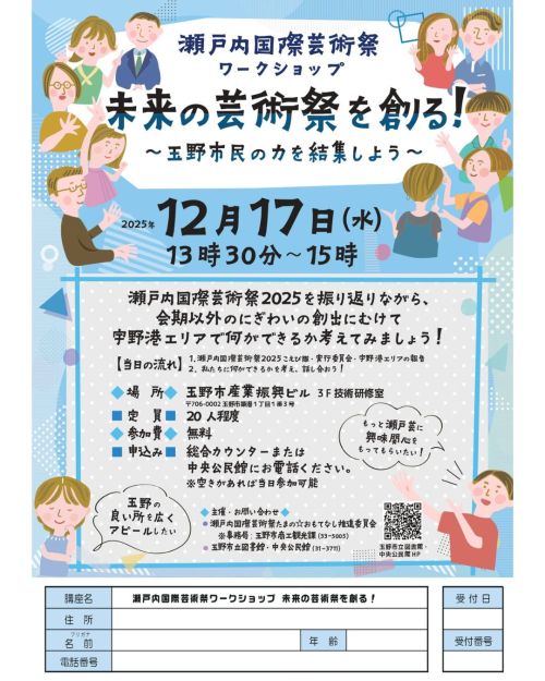 ワークショップのお知らせです。『瀬戸内国際芸術祭ワークショップ 未来の芸術祭を創る!~玉野市民の力を結集しよう!~』