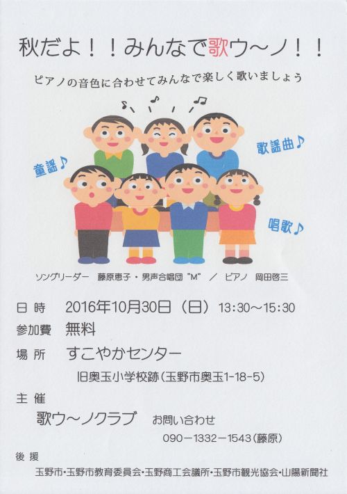主催 歌ウ~ノクラブ 090-1332-1543(藤原)